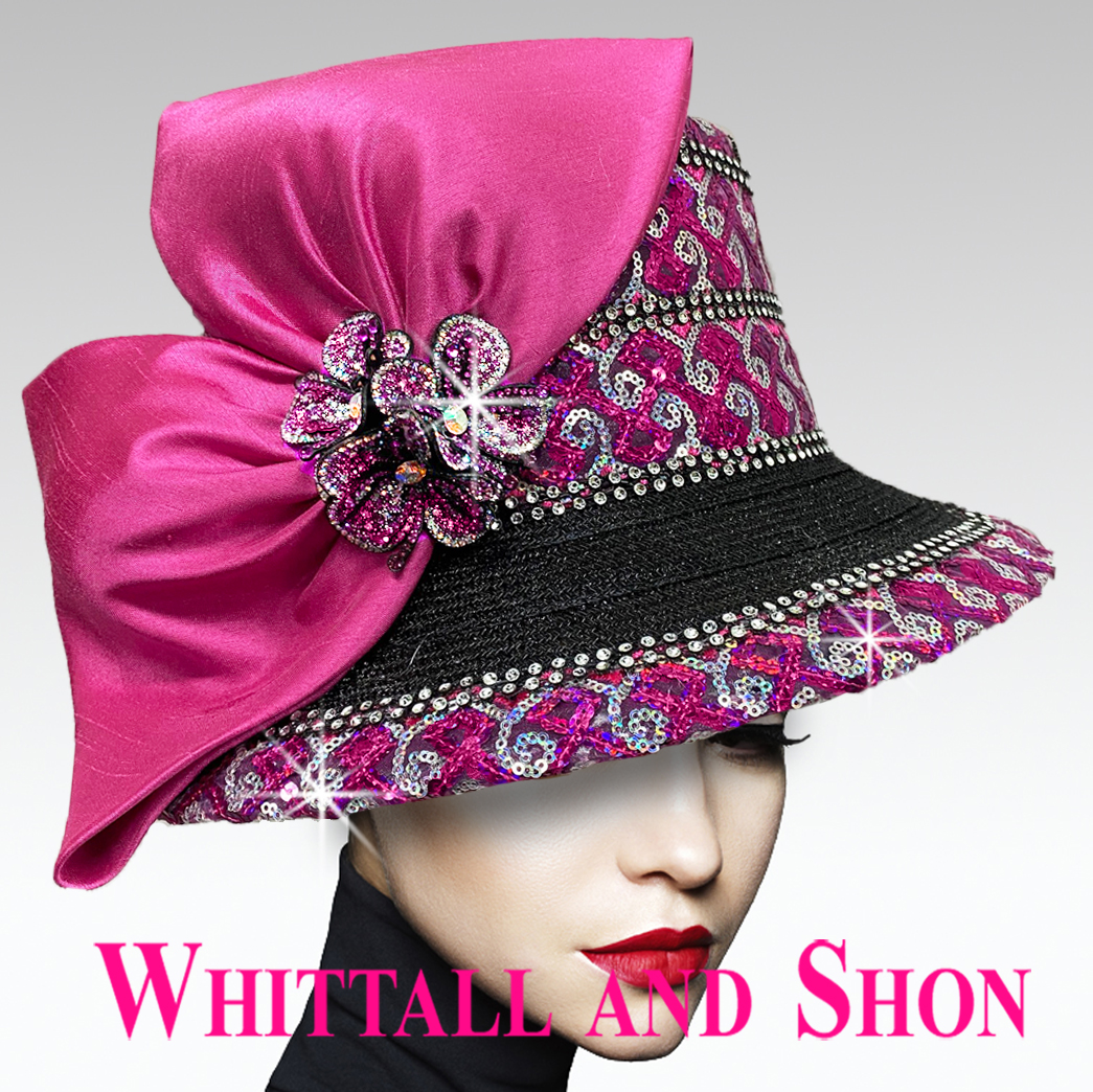 This hat is a stunning blend of timeless style and modern embellishment. The hat’s entire crown and the edge are trimmed with tonal sequins and stones. A smart tailored bow, adorned with a crystal flower, is strategically placed to flatter all face types.