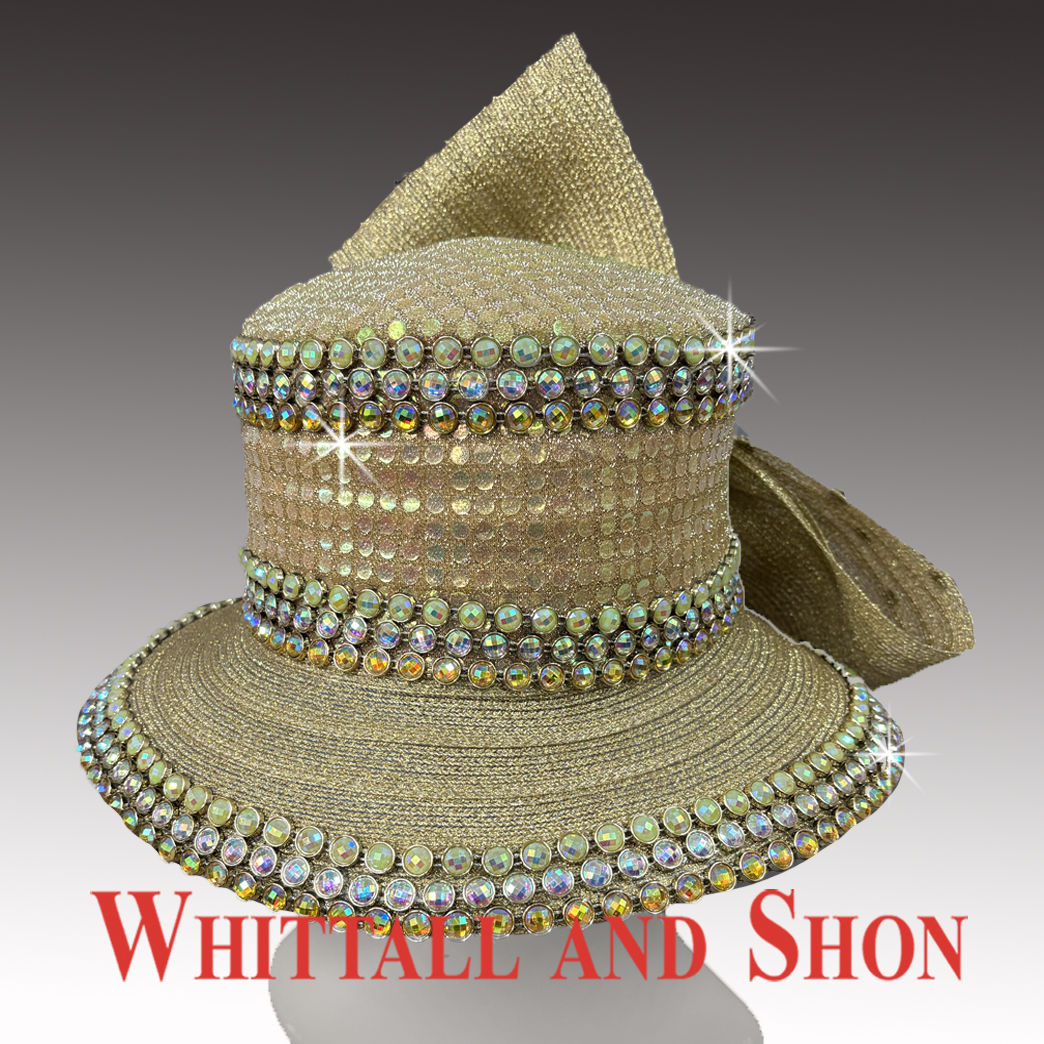 Canterbury is a classic 3″ brim flat crown bucket hat reimagined with dazzling sophistication. The hat features an artfully orchestrated placement of glittering jewels that gracefully frame both the hatband and brim edge. Adding a striking flourish is a dramatic profile bow, generously studded with matching jewels, creating a bold statement. Whether worn to a church celebration, wedding, or any special occasion, this hat radiates elegance, reverence, and refined glamour.