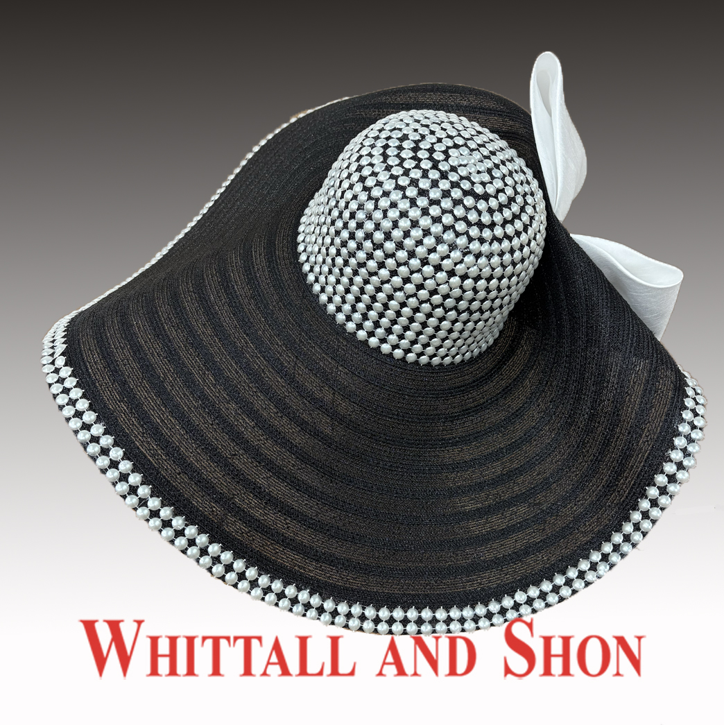 The Captiva hat features a generous 8-inch brim and a perfectly rounded crown, this statement headpiece exudes timeless sophistication and modern drama in equal measure. The entire crown and brim’s edge are blanketed in luminous pearls. Expertly manipulated to frame, the brim’s fluid contour enhances the wearer’s features. A bow and crystal bloom complete the design. The adjustable sweat band assures a secure fit.