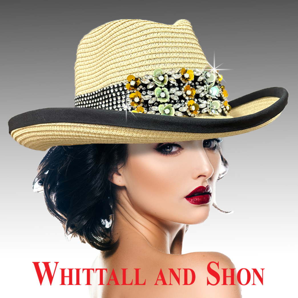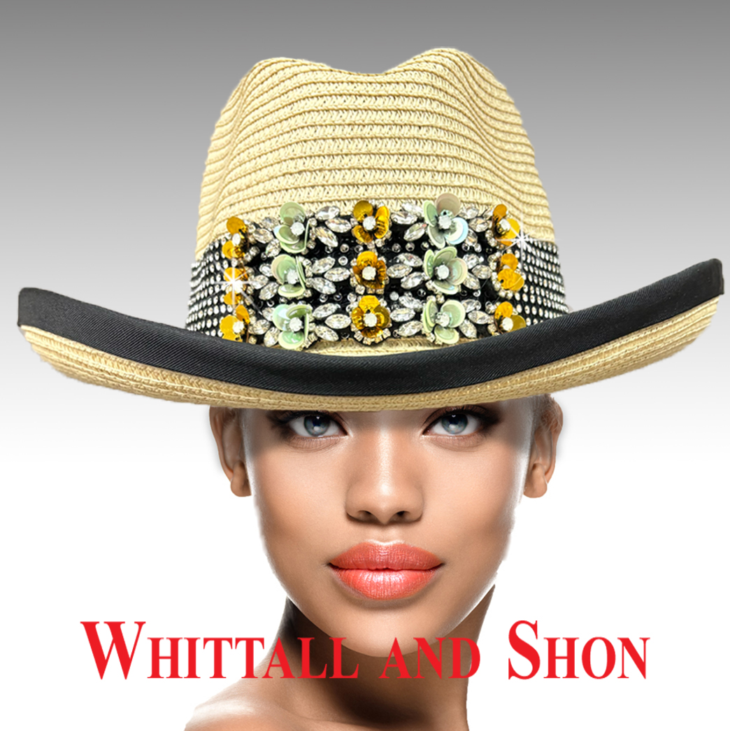 CARIBE is a stunning Caribbean-inspired cowboy hat that seamlessly blends island flair with Western elegance. A sleek black edge frames the lip of the perfectly proportioned 4″ brim. At the heart of the design lies a meticulously hand-beaded collage of shimmering crystals and dazzling paillettes. This centerpiece sits proudly at the front of a faux crystal hatband. For any stylish outing CARIBE will make a statement.