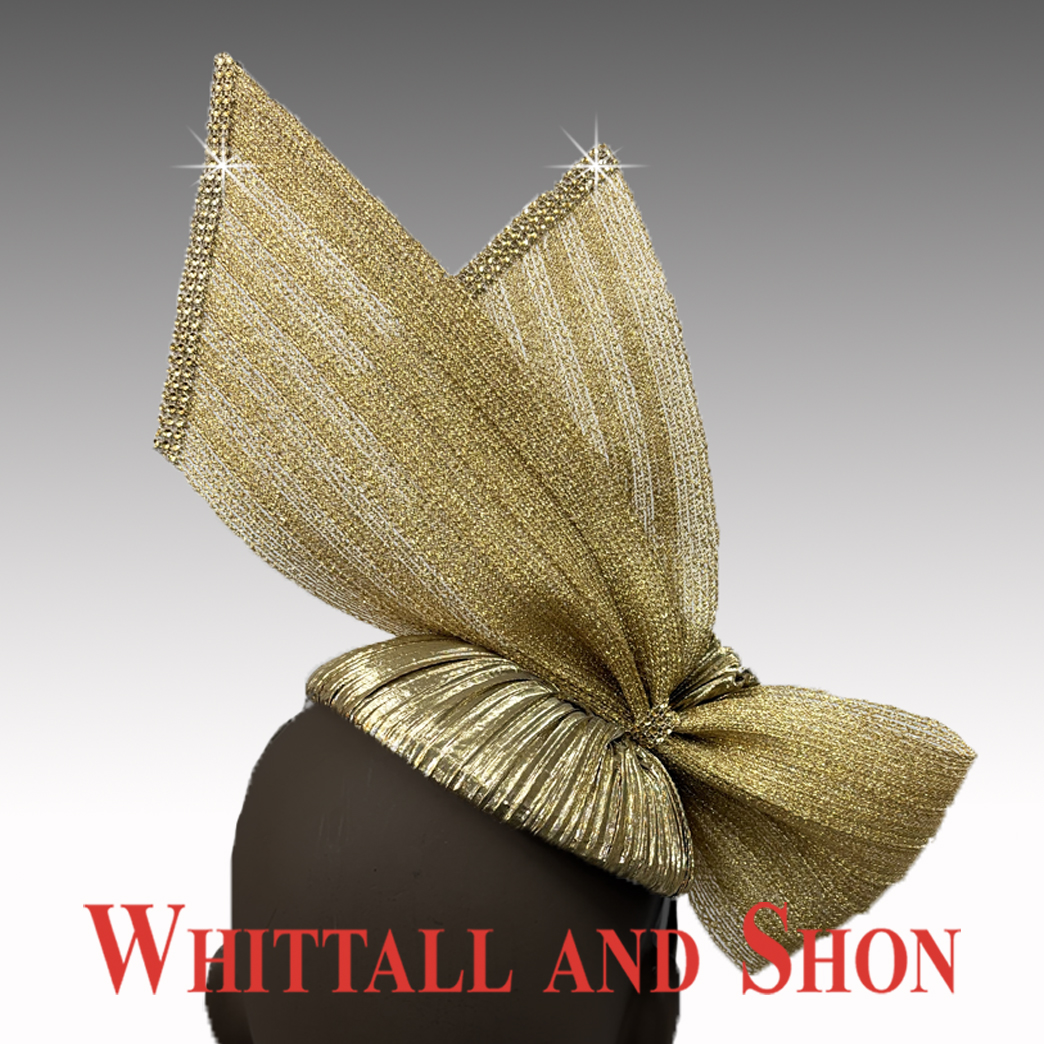 Shauna is a masterclass in structured drama with a touch of playful charm. This 9.5″ diameter rounded cap sits securely on a headband. Atop the cap, a sculptural arrow bow unfurls with bold, flared tails. To soften the angular lines and infuse the design with lightness, a delicate crystal snowflake perches near the center of the bow. Shauna is a conversation piece—perfect for events where style meets storytelling.