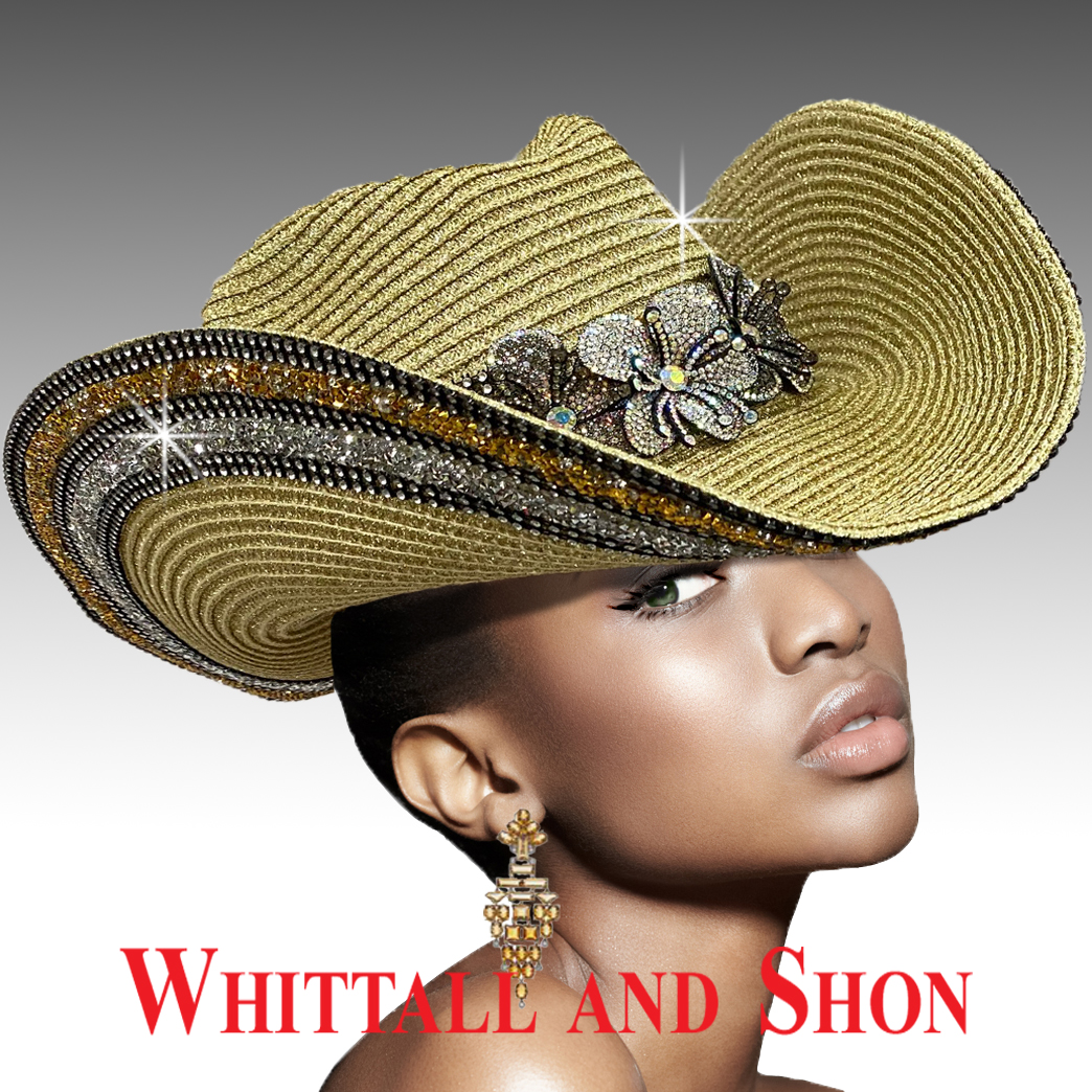 Gold and silver diamond dust adorn this cowboy with its 4.75″ brim. The smattering of aqua and jade hued paillettes and cut crystals add the finishing touches. The adjustable sweatband allows for varying head sizes.