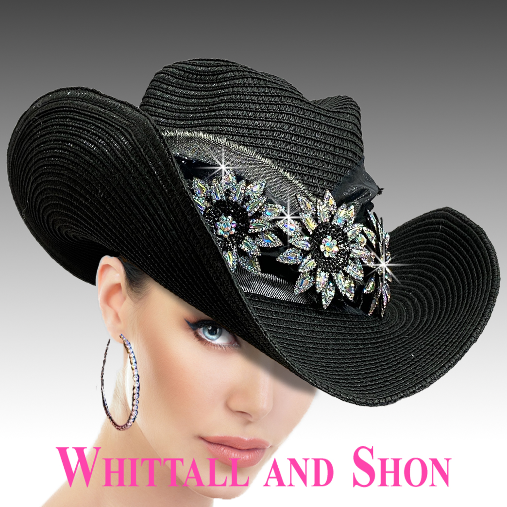 For those who want to kick back in style, we have the perfect cowboy hat to compliment any outfit whether it be a pair of jeans or a flirty printed dress. The unconstructed mix media band varies with each color combination. Hand embellished crystal asters embellish the front. The adjustable sweatband assures a secure fit.